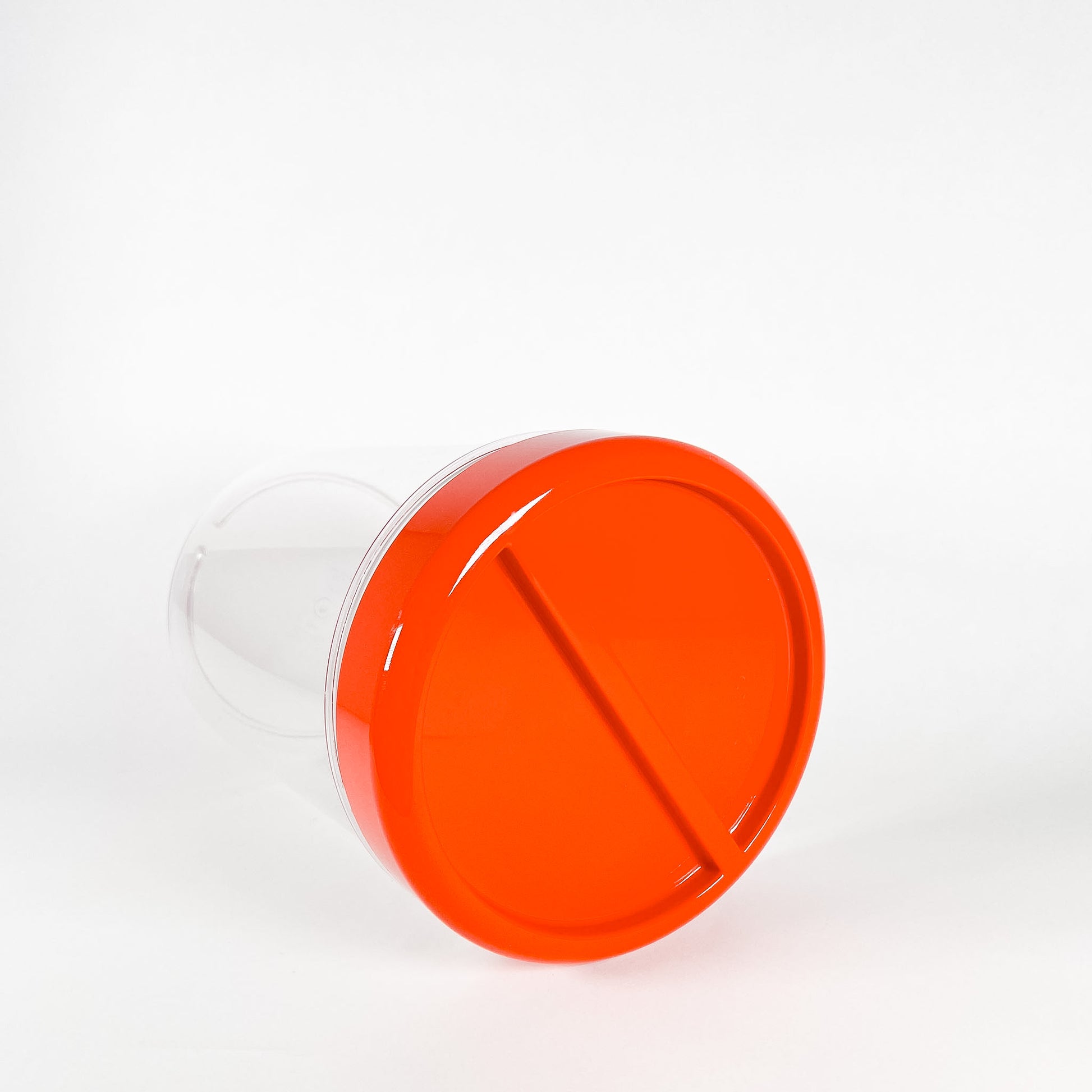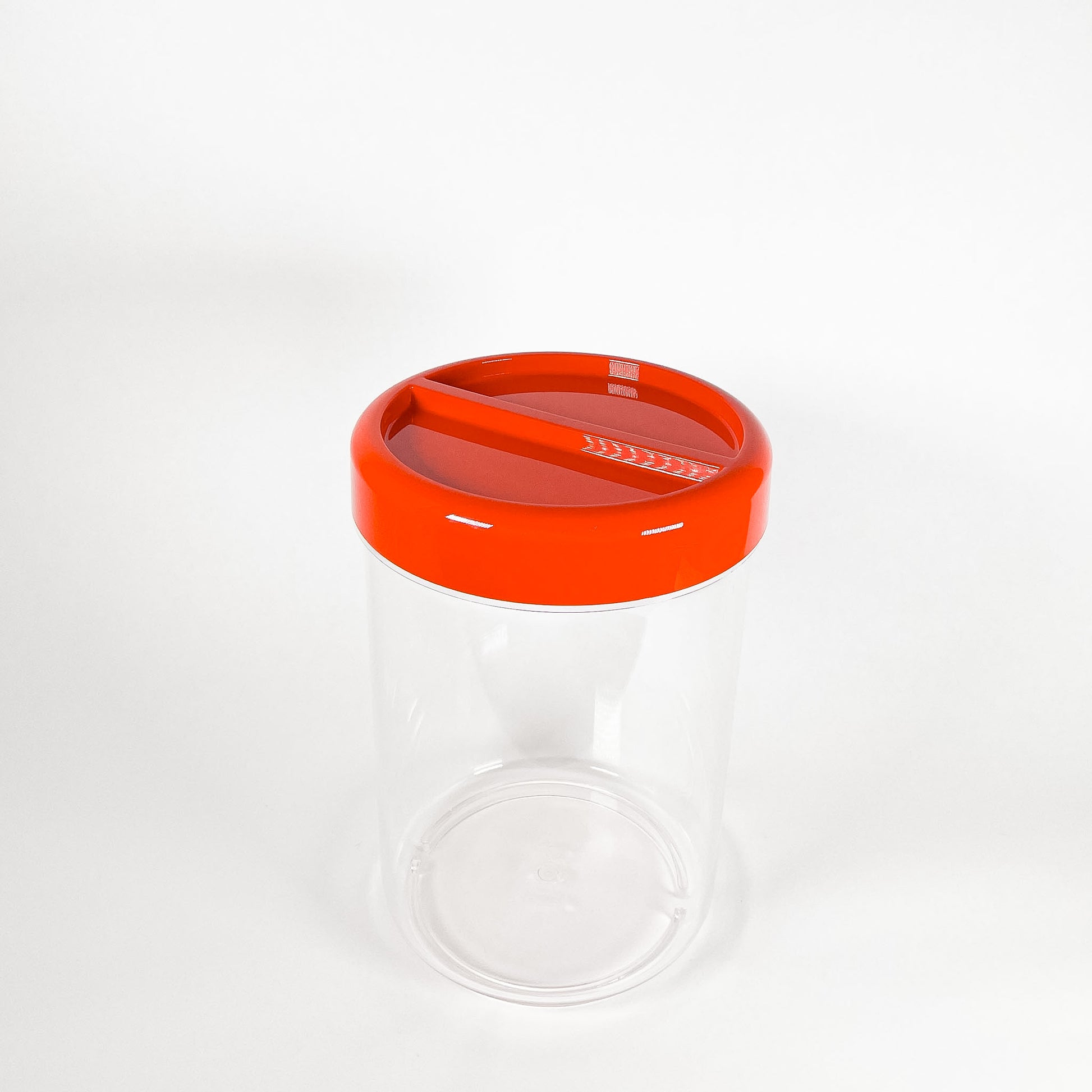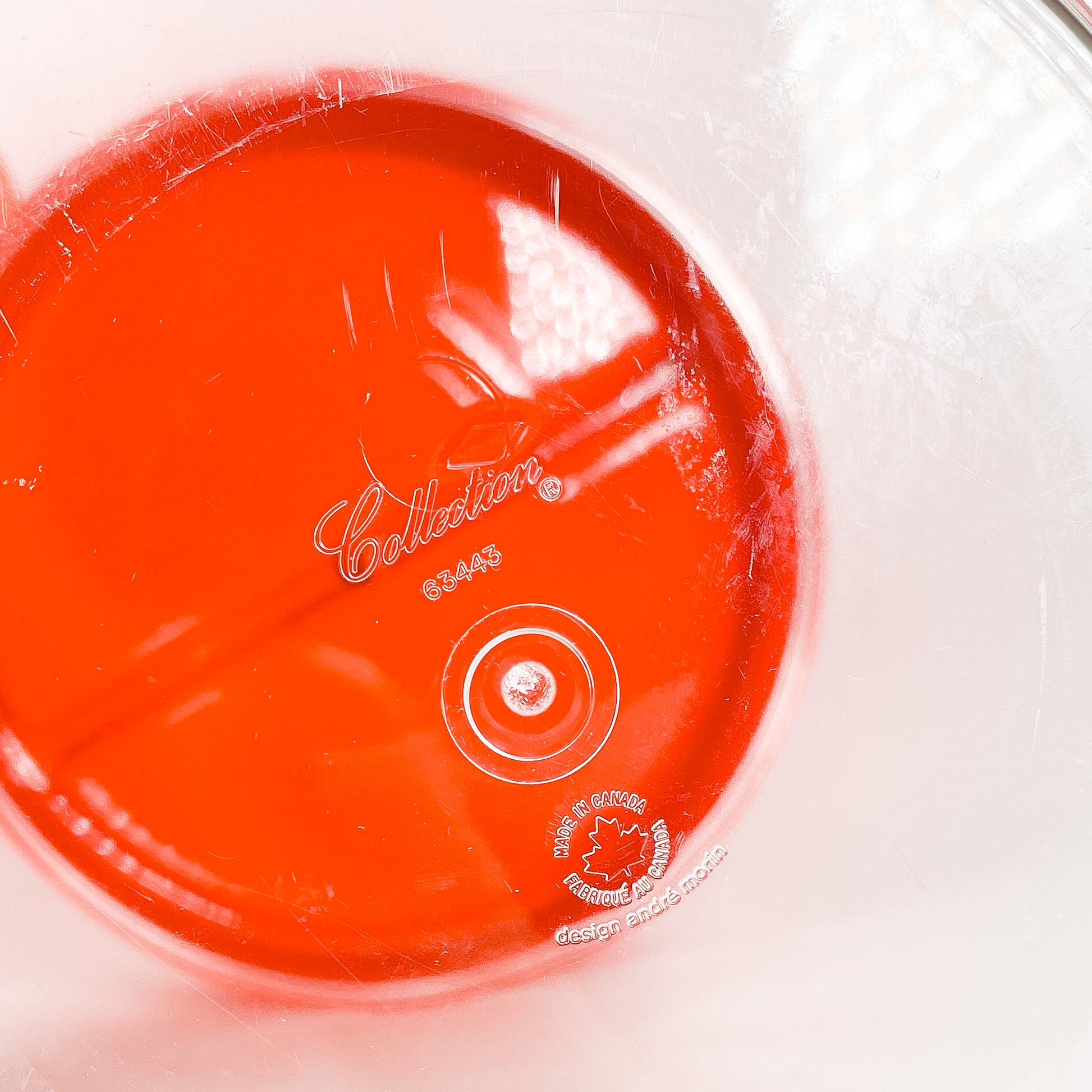Grand contenant en acrylique et mélamine rouge, fabriqué au Québec par IPL, design par André Morin.