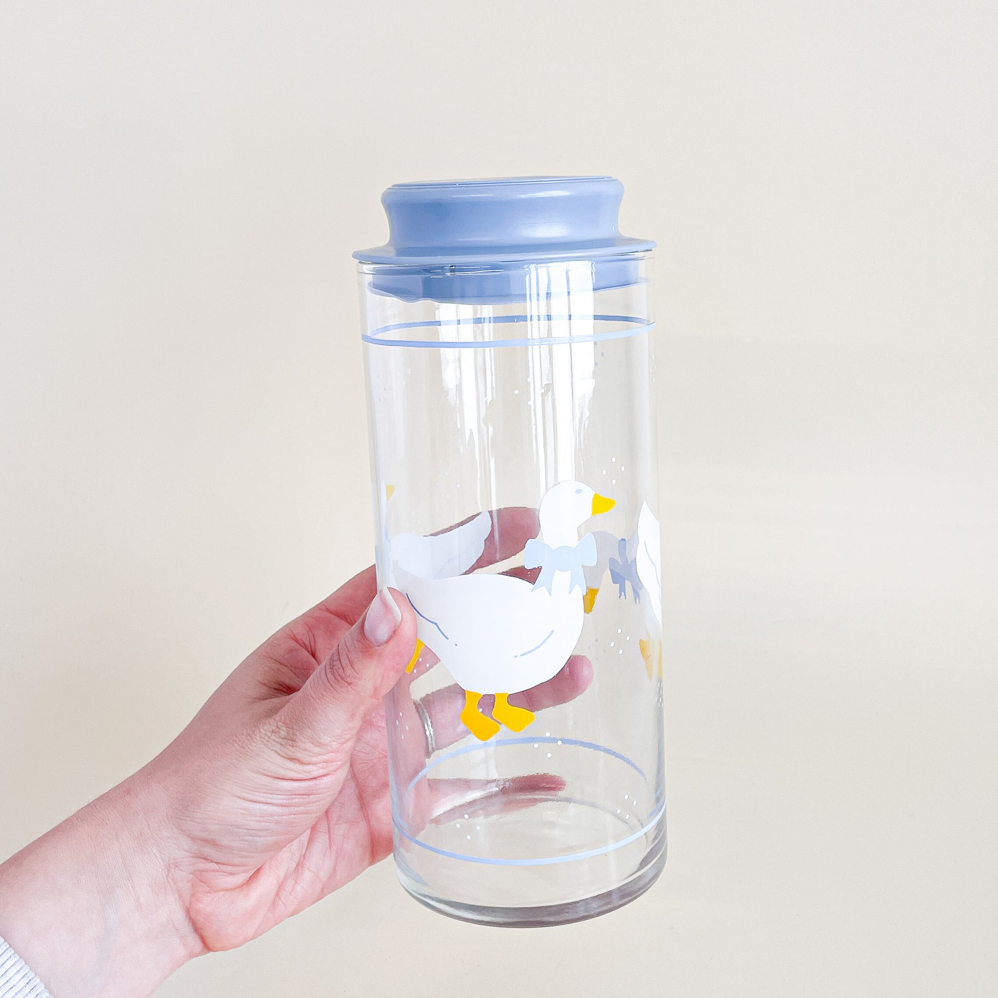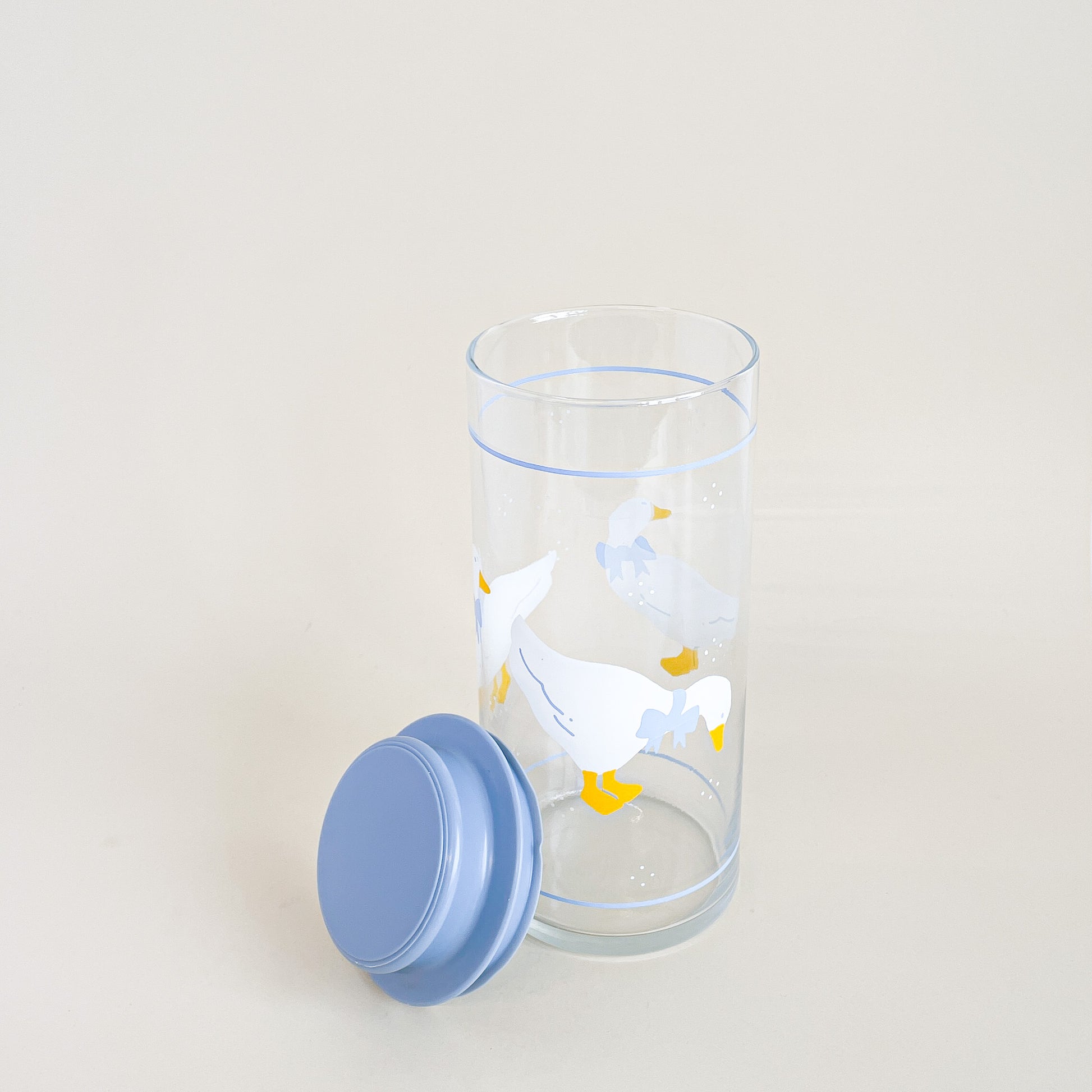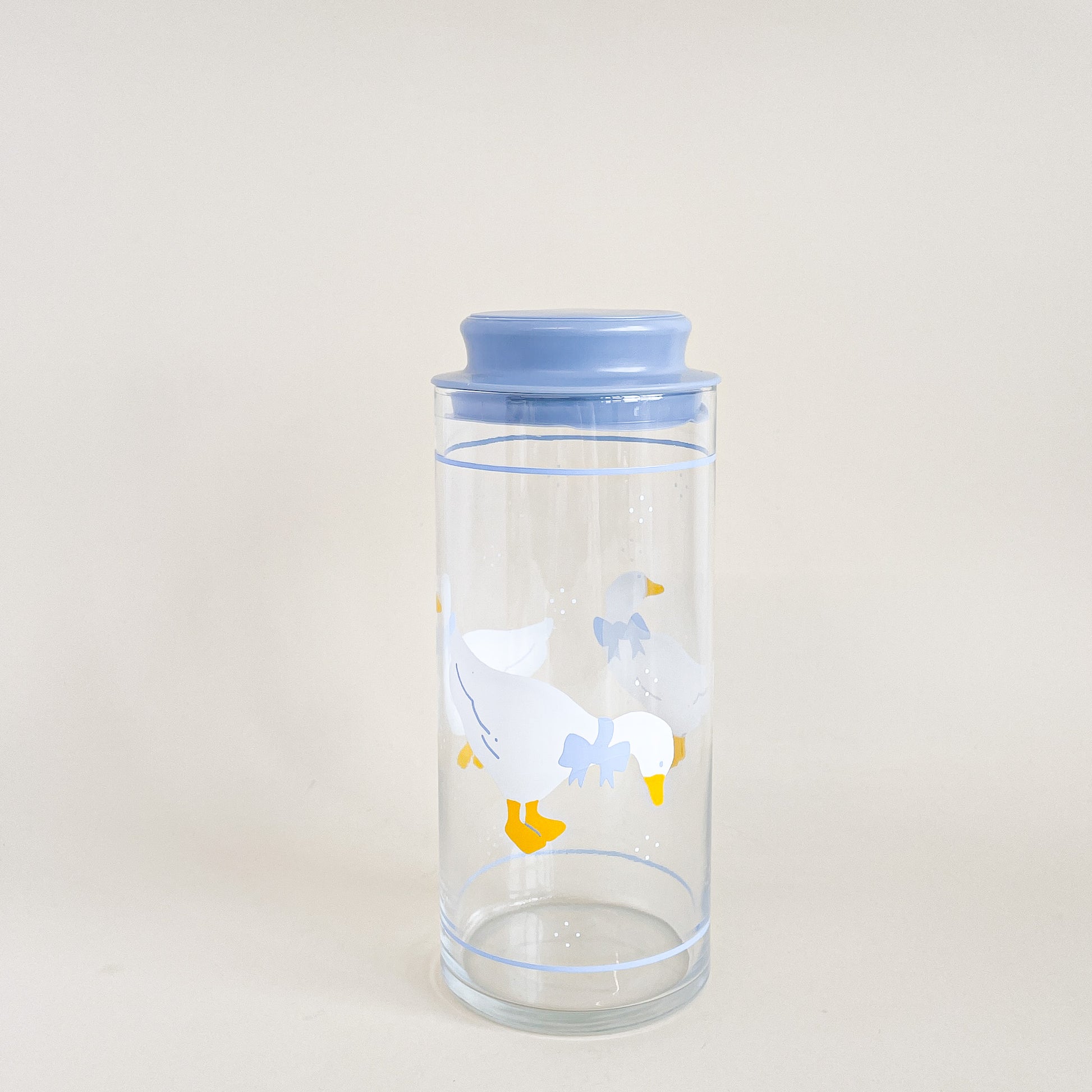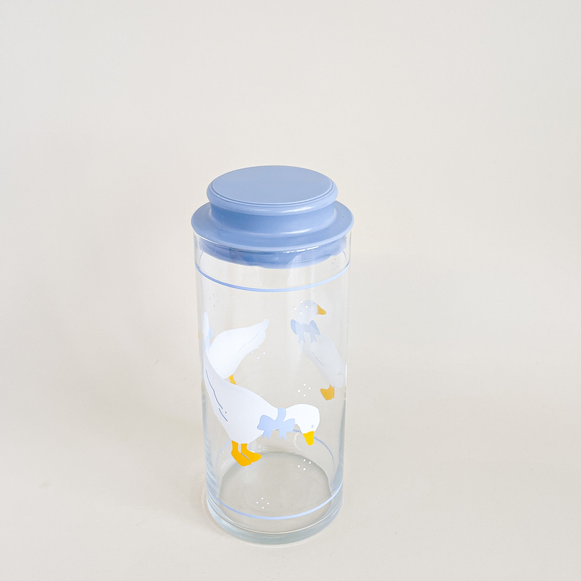 Jarre cylindrique en verre et couvercle hermétique en plastique. Super pratique pour y mettre des pâtes ou tout autre aliment en vrac !