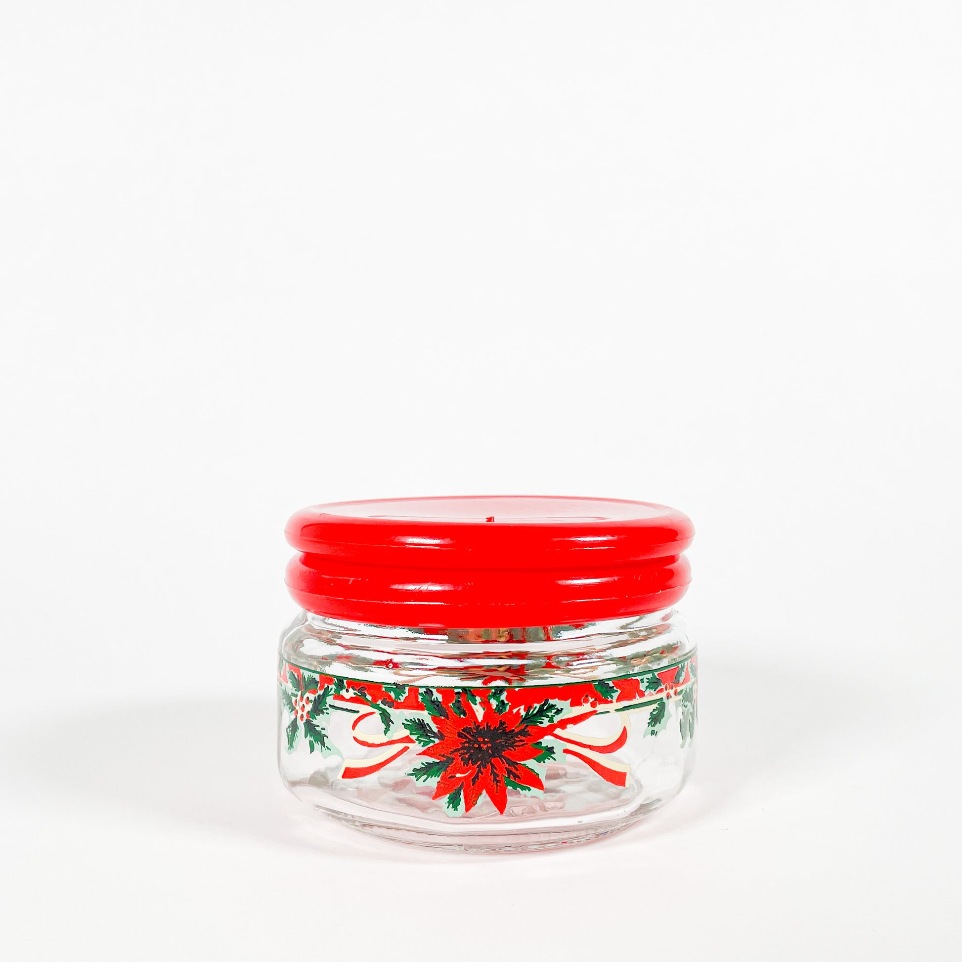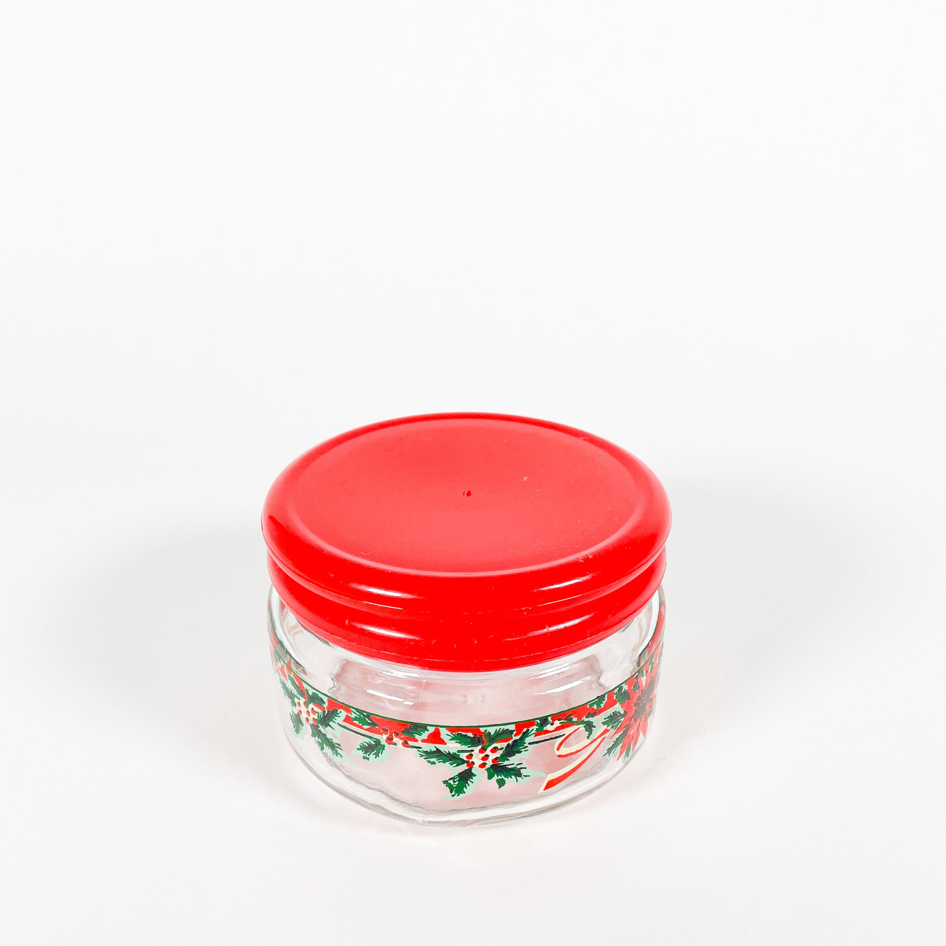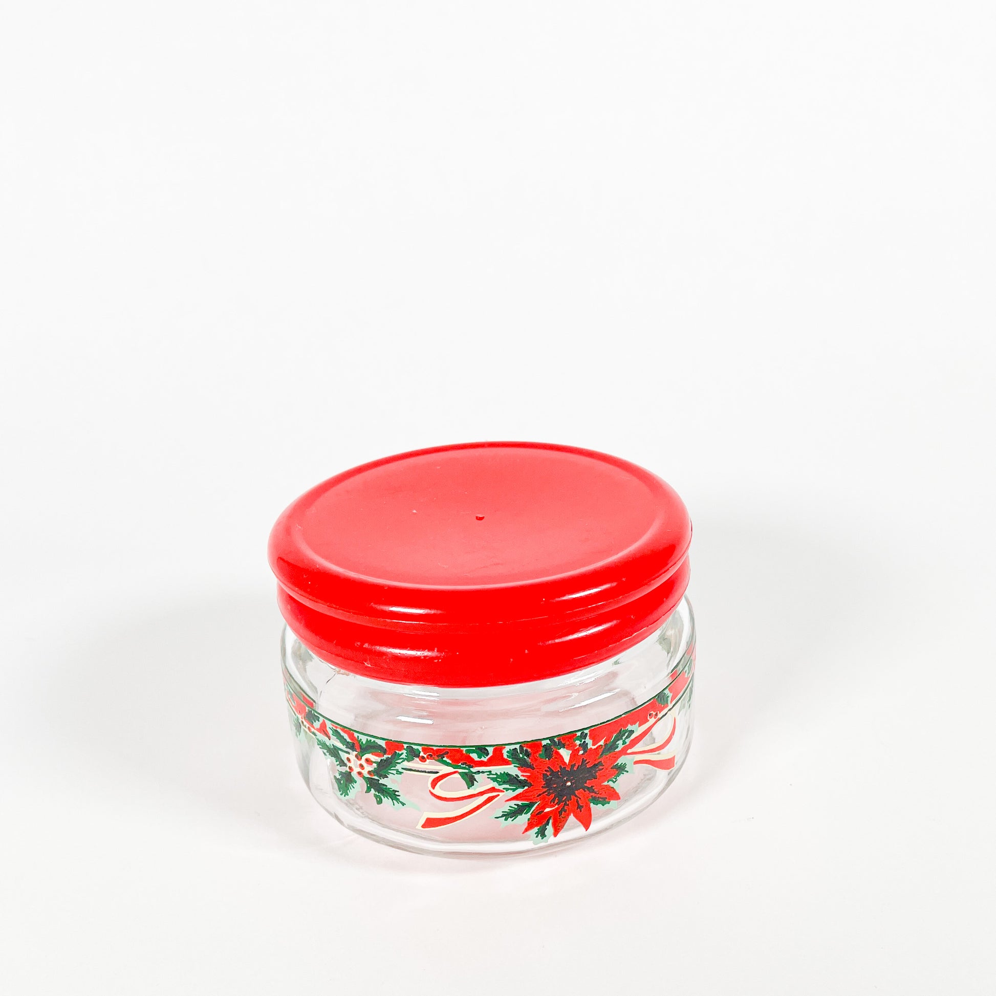 Petite jarre en verre avec couvercle en plastique rouge, fabriquées par KIG Indonesia.