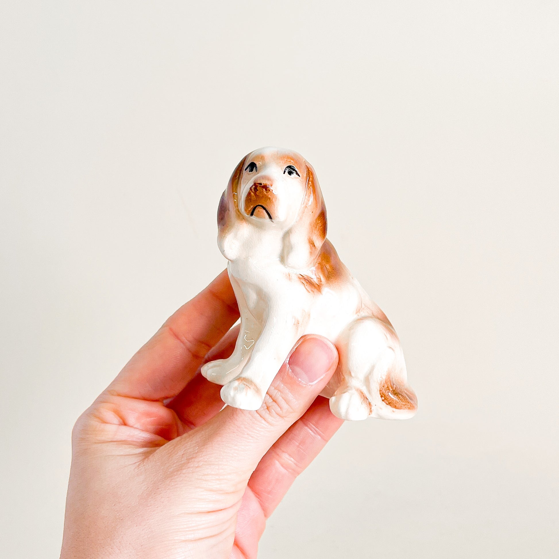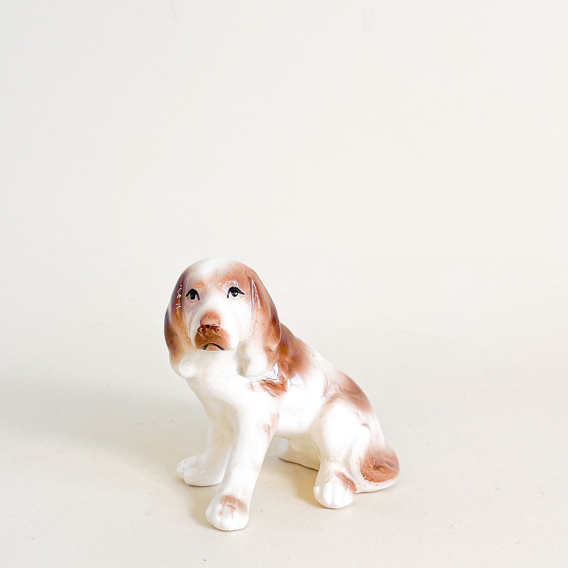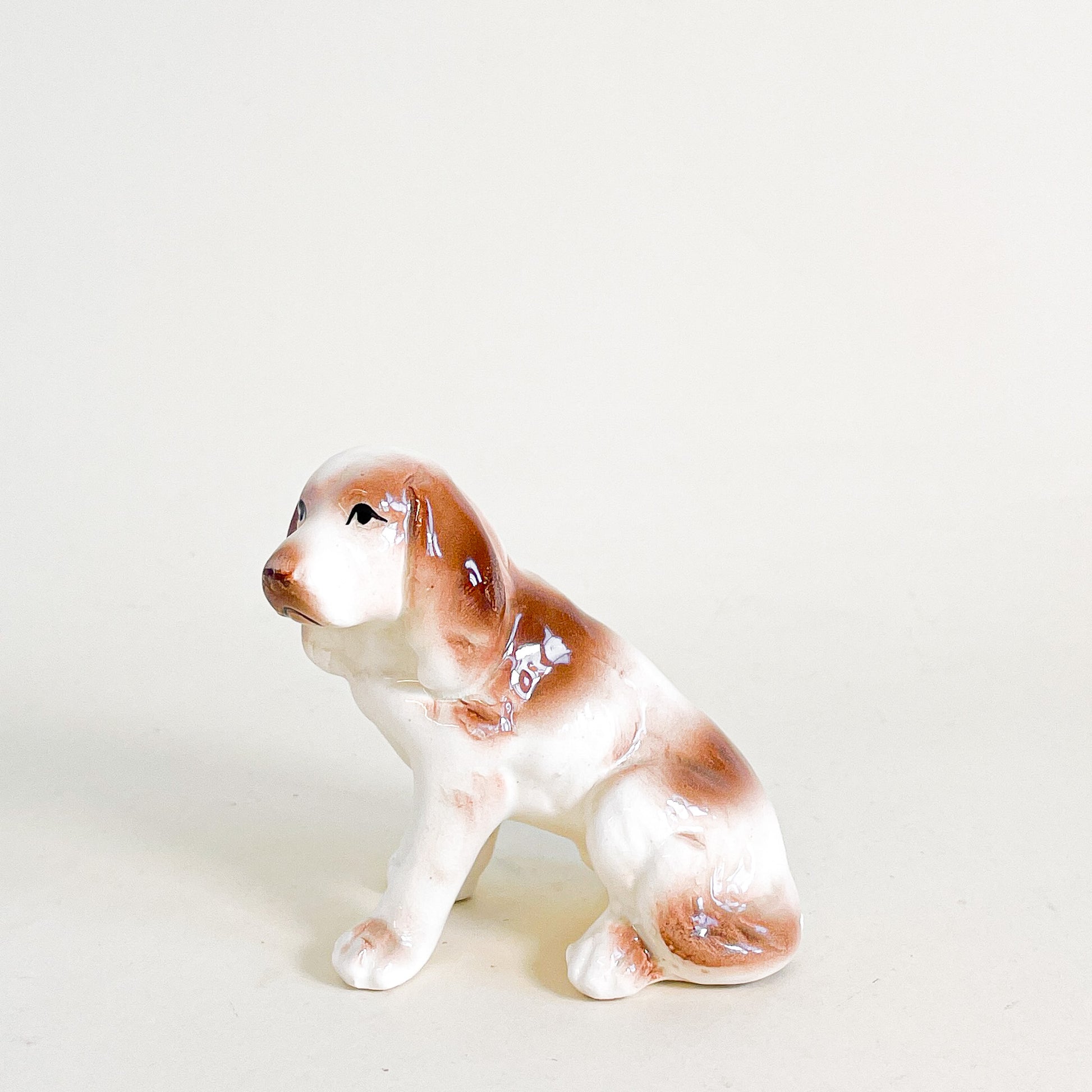 Mignon petit chien en céramique style labrador beige.