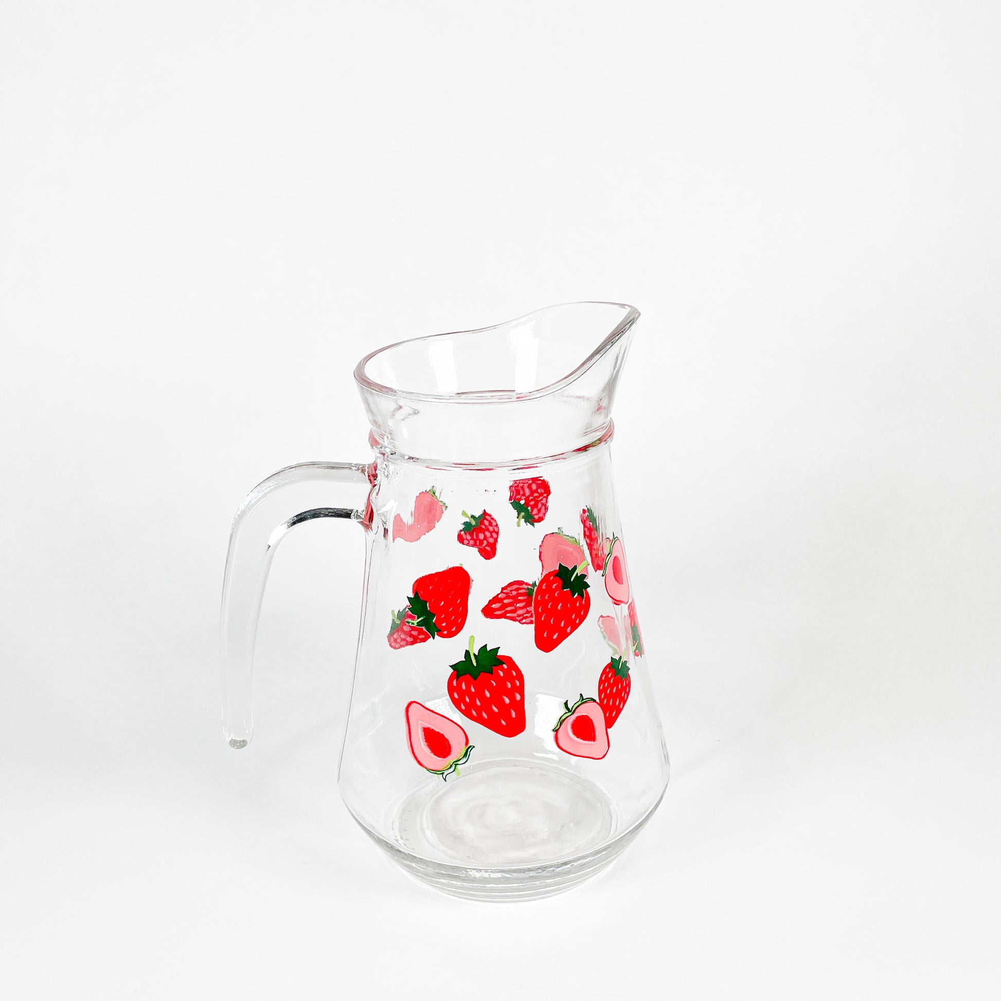 Pichet en verre 1980s KIG Indonesia avec trop cute motif de fraises.