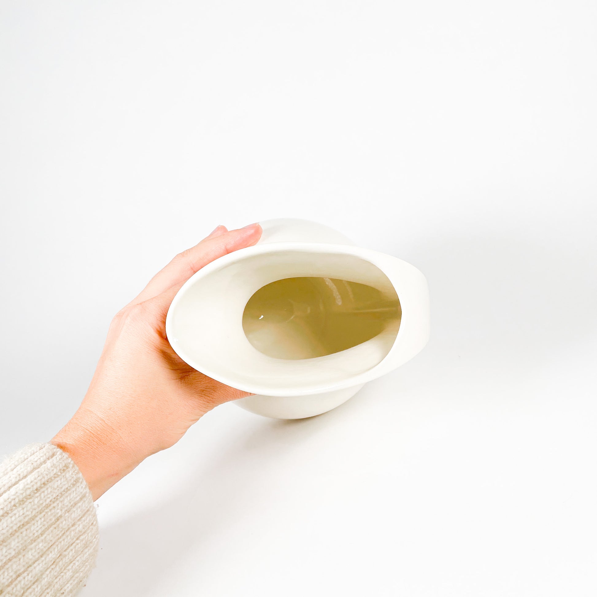 Cool pichet en céramique sphérique blanche.
