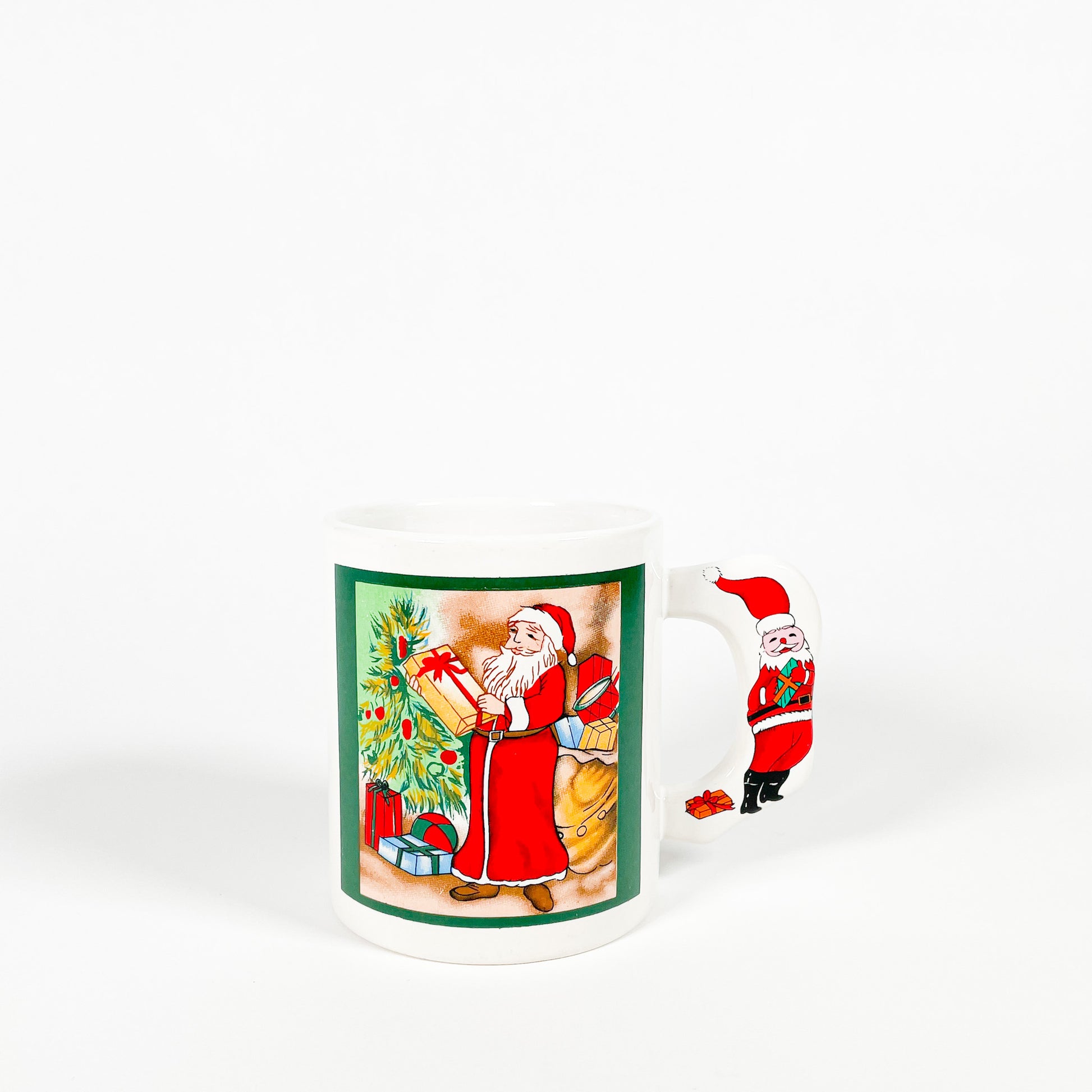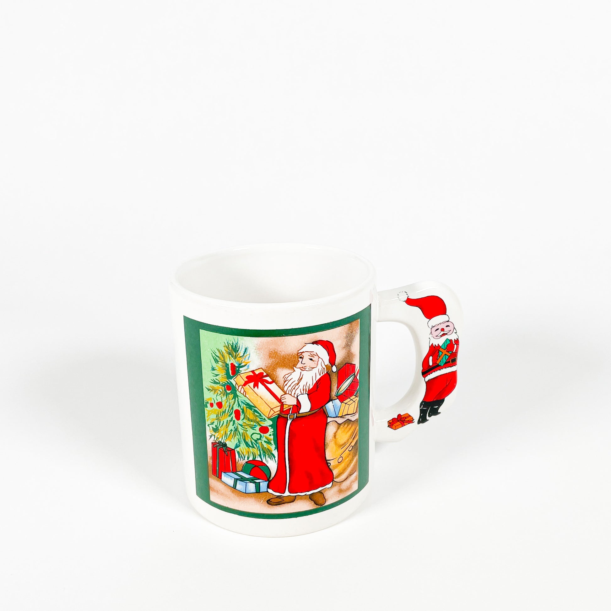 Tasse en céramique blanche avec imprimé de Père Noël.