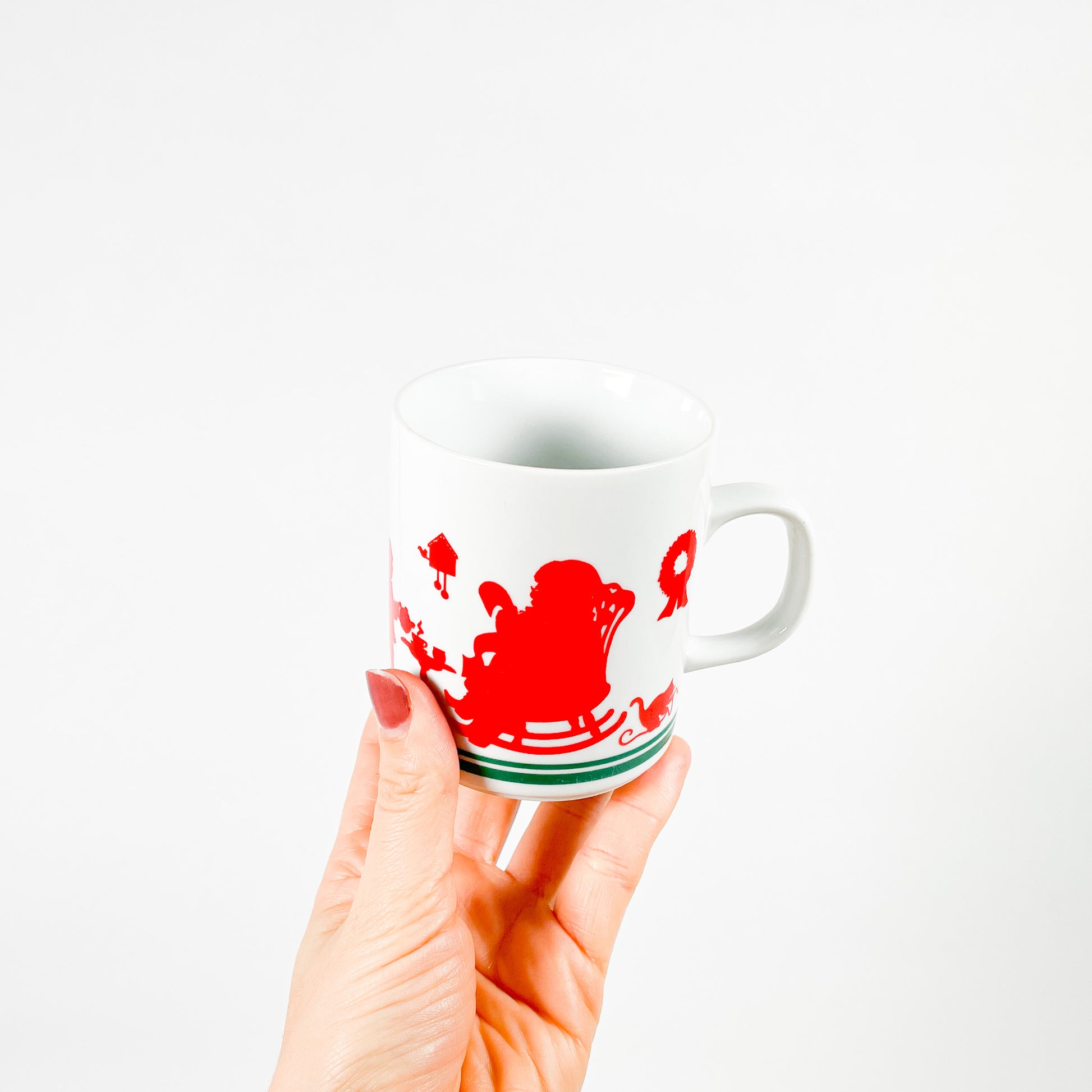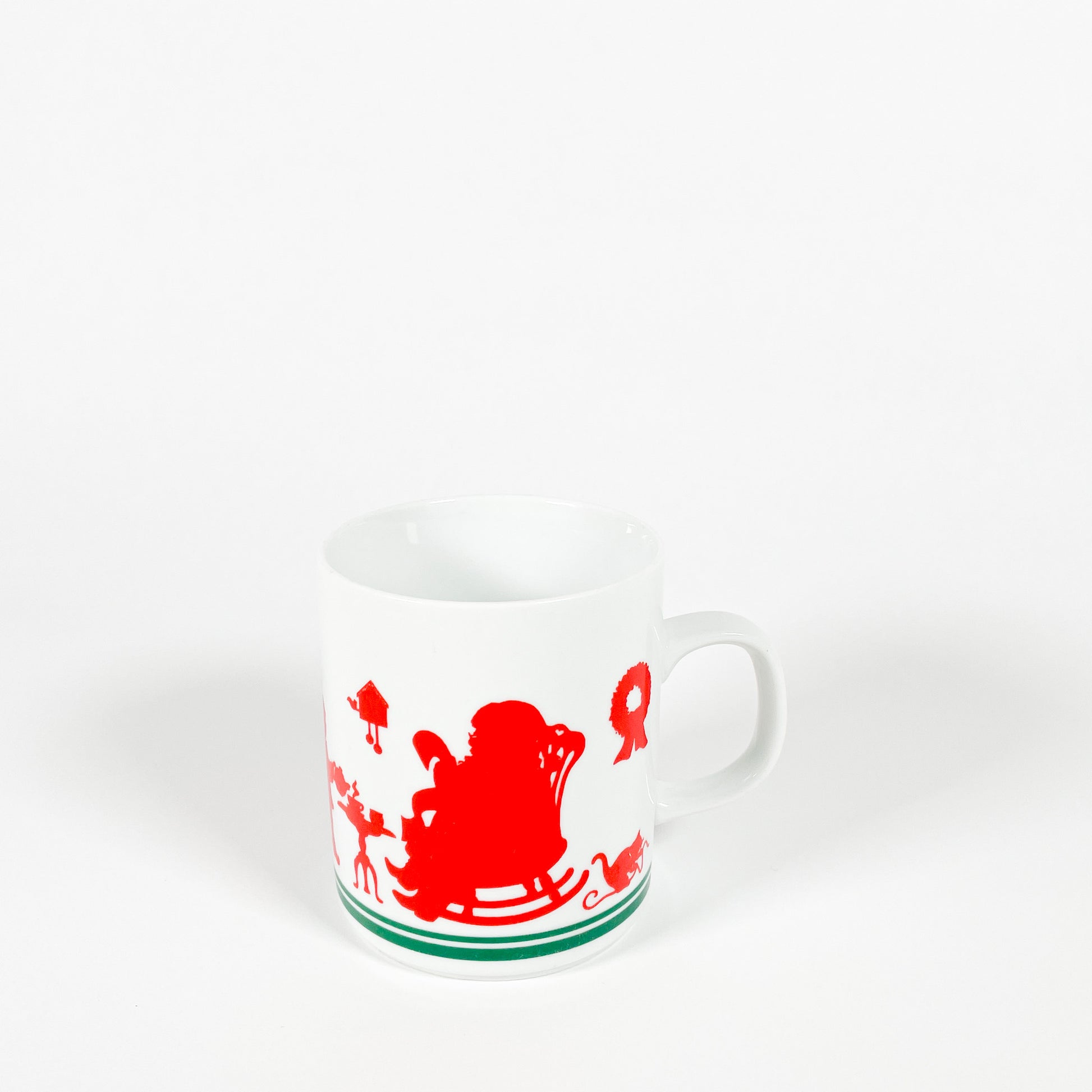 Tasse en céramique Père Noël et lutins de marque Avon, fabriquée en 1984.