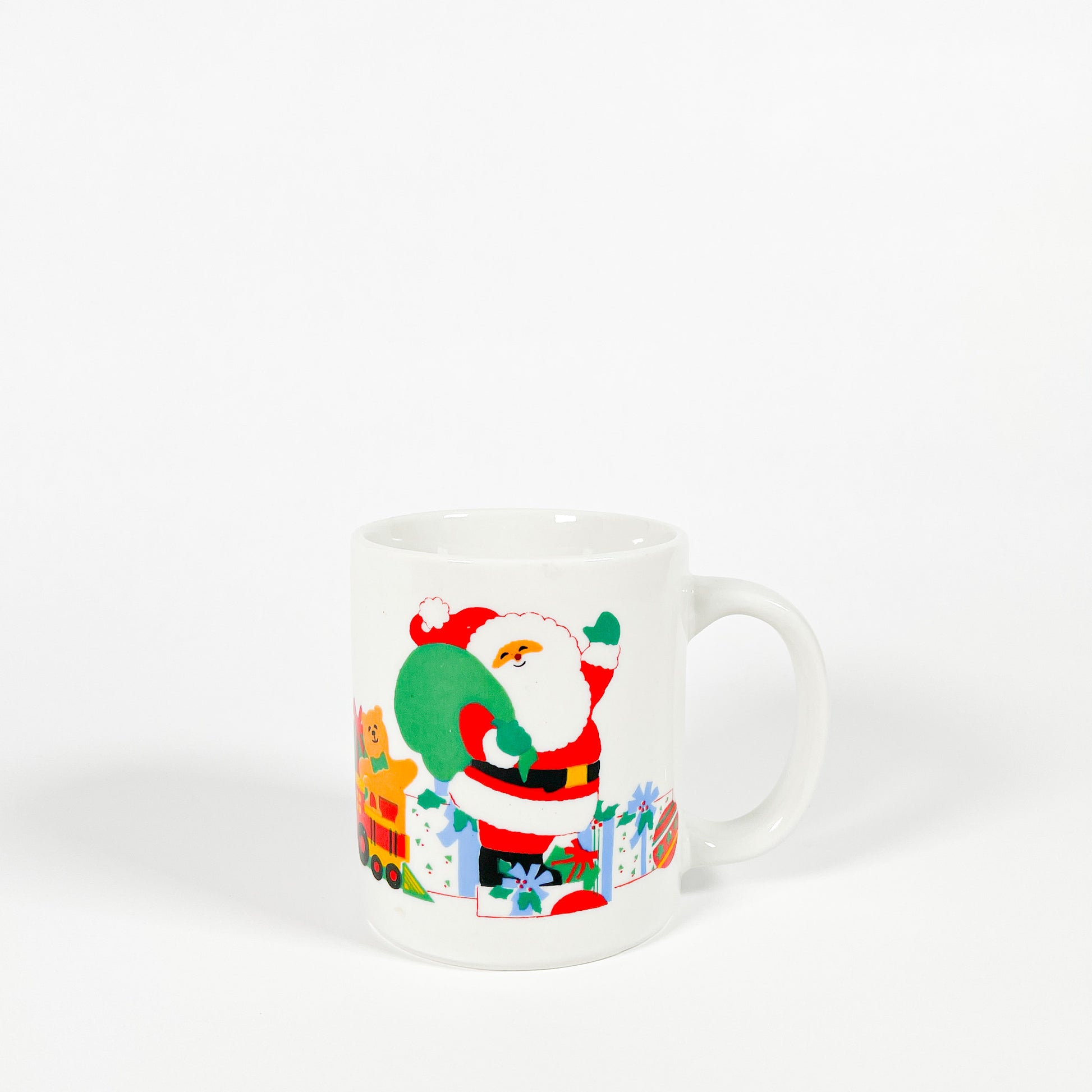 Tasse en céramique blanche avec imprimé de Père Noël, fabriquée par EMSON China.