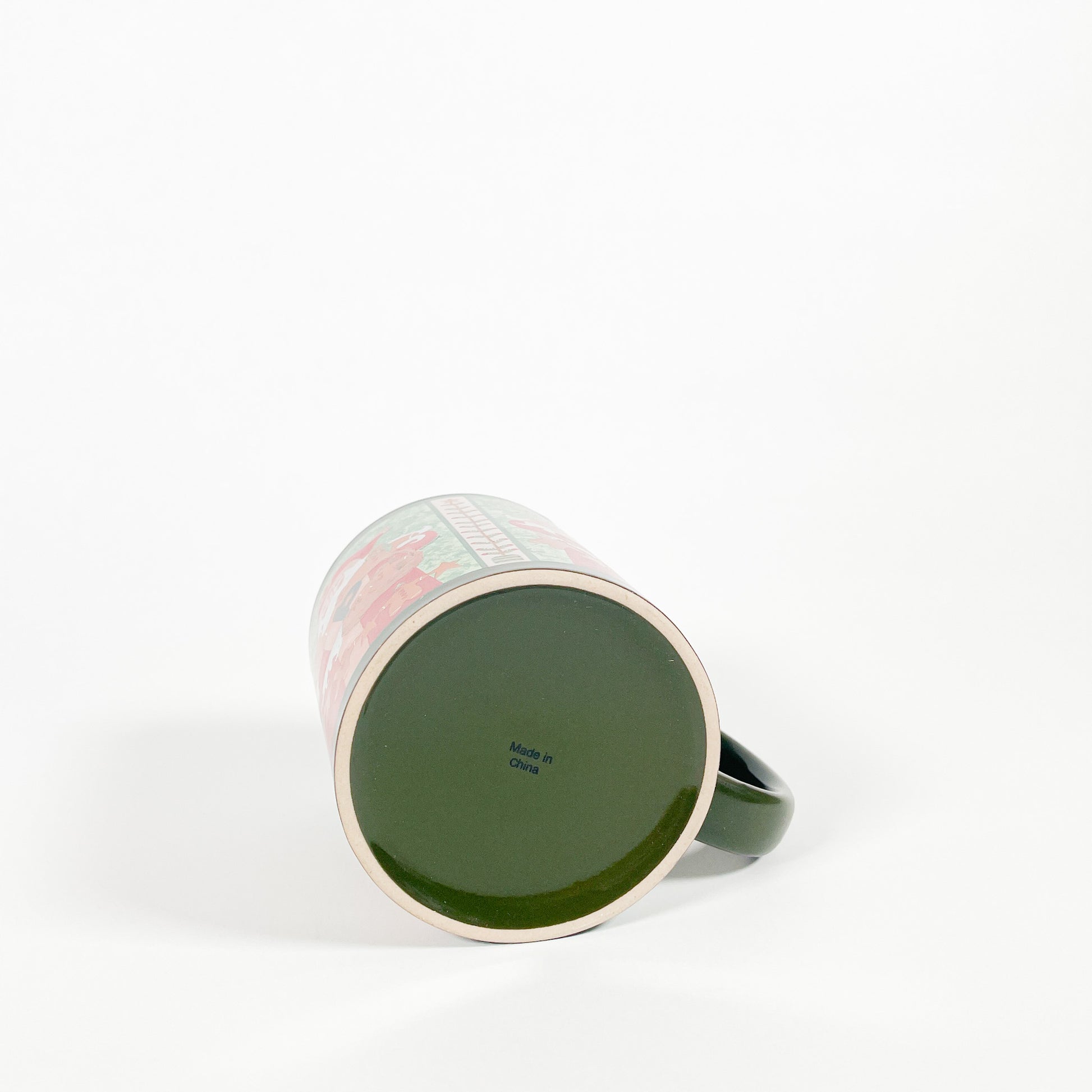 Tasse en céramique verte avec une jolie illustration de Teresa Kogut.